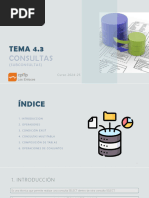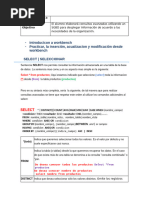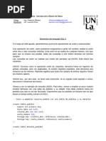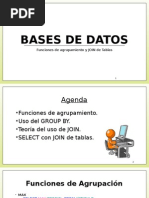 where F.nro_factu between 10 and 23 ------------------------------------------------------------------------------------INNER JOIN El INNER JOIN: Es otro tipo de composicin de tablas. En lugar de hacer el producto cartesiano completo, para cada una de las tablas busca directamente en la otra tabla las filas que cumplen la condicin. LEFT OUTER JOIN: Toma todos los registros de la tabla izquierda, aunque no tengan ningn registro coincidente (clave), en la tabla de la derecha. RIGHT OVER JOIN: Realiza la seleccin de todos los registros de la tabla de la derecha, aunque NO tenga ningn registros de la tabla de izquierda.