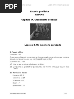 los asuntos prcticos de la vida. Haga del culto de familia un momento agradable y de comunicacin. 5. SIETE SECRETOS DE LA ORACIN CONTESTADA Cuando Moiss or, el Mar Rojo se abri. Cuando Elas or, descendi fuego del cielo. Cuando Daniel or, un ngel cerr la boca de los leones. La Biblia nos presenta muchos ejemplos de oraciones contestadas, y nos recomienda la oracin como la manera de tener acceso al poder de Dios. Jess prometi: Si algo pidiereis en mi nombre, yo lo har. S. Juan 14:14. Sin embargo, algunas oraciones parecen no ser escuchadas. Por qu? Estos siete principios le ayudarn a orar ms efectivamente: a). Mantngase cerca de Cristo. SI PERMANECIS EN M, y mis palabras permanecen en vosotros, pedid todo lo que queris, y os ser hecho. S. Juan 15:7. Si hacemos de nuestra relacin con Dios y estar en contacto con l nuestra prioridad, escucharemos y buscaremos las respuestas a nuestras oraciones que, de otra manera, podran pasar inadvertidas. b). Confe en Dios. Y todo lo que pidiereis en oracin, CREYENDO, lo recibiris. S. Mateo 21:22. La fe consiste en buscar al Padre celestial confiadamente, para que supla nuestras necesidades. Si siente que le falta la fe, recuerde que nuestro Salvador hizo un milagro para un hombre desesperado que le rog: Creo; ayuda mi incredulidad. S. Marcos 9:24. Concntrese en ejercitar la fe que tiene. No se preocupe por la que le falta. c). Rndase confiadamente a la voluntad de Dios. Y esta es la confianza que tenemos en l, que si pedimos alguna cosa CONFORME A SU VOLUNTAD, l nos oye. 1 S. Juan 5:14. Recuerde que Dios desea tanto ensearnos como darnos cosas por medio de la oracin. A veces dice no; y otras veces nos lleva en otra direccin. La oracin es un medio para estar a tono con la voluntad de Dios. Por tanto, tenemos que estar atentos a las respuestas de Dios y aprender de ellas. Es de gran ayuda recordar nuestras peticiones especficas y lo que nos ha sucedido. d). Espere pacientemente en Dios. PACIENTEMENTE ESPERE A JEHOV, y se inclin a m y oy mi clamor. Salmos 40:1. Lo importante es mantener la atencin en Dios, en su respuesta. No haga oraciones precipitadas y luego piense con temor en el problema. Espere pacientemente en el Seor. Necesitamos practicar esta disciplina. e). No persista en el pecado. SI EN MI CORAZN HUBIESE YO MIRADO A LA INIQUIDAD, el Seor no me habra escuchado. Salmos 66:18. El pecado acariciado anula el poder de Dios en nuestras vidas: nos separa de l (Isaas 59:1-2). Usted no puede persistir en el pecado y, al mismo tiempo, esperar la ayuda divina. La confesin sincera y el arrepentimiento resuelven este problema. Si no estamos dispuestos a que Dios nos libere de nuestros malos pensamientos, palabras y acciones, nuestras oraciones no sern efectivas. Peds, y no recibs, porque peds mal, para gastar en vuestros deleites. Santiago 4:3. Dios no responder s a las oraciones egostas y faltas de sinceridad. Mantenga sus odos abiertos a la ley de Dios, cumpla su voluntad, y l escuchar sus peticiones. El que aparta su odo para no or la ley, su oracin tambin es abominable. Proverbios 28:9.