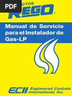 La seleccin del tamao de las tuberias y conexiones es esencial para el funcionamiento ecz del equipo alimentado por Gas-LP. Debe tomarse en consideracin el mximo requerimiento de gas, as como una caida de presin aceptable desde el punto de suministro hasta la entrada del aparato de gas. El dimensionamiento debe cubrir cuatro requisitos en reas diferentes: 1) Dimensionamiento de la tuberia entre los reguladores de primera y segunda etapa. 2) Dimensionamiento entre el regulador de segunda etapa y el aparato. 3) Dimensionamiento entre la red de 2 psig (0,14 bares) y los reguladores de linea. 4) Dimensionamiento entre el regualdor de presin en linea y el aparato. Los siguientes ejemplos, as como las Tablas 7 a 10 (a partir de la pgina 23), le ayudarn a dimensionar correctamente las tuberias para stas cuatro reas. Todas las tablas se calcularon segn los folletos No. 54 y 58 de NFPA.
