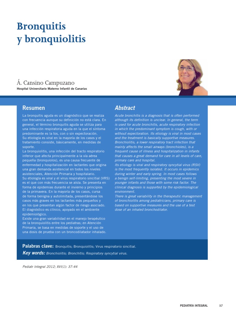 Palabras clave: Bronquitis; Bronquiolitis; Virus respiratorio sincitial. Key words: Bronchiolitis; Bronchitis; Respiratory syncytial virus.