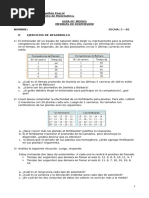2.- Un investigador califica la aptitud de los grupos A y B de dos modos. Si los cuartiles 1, 2, y 3 del grupo A son respectivamente 5,10 y 30 y del grupo B son 35, 45 y 50 a. Cul de los dos grupos tiene aptitud ms homognea? 3.- Una prueba de conocimiento, A se califico sobre 20 puntos dando una media de 12 y una desviacin estndar de 2 puntos. Mientras que una prueba de aptitud, B se califico sobre 100 puntos, dando una media de 70 y una desviacin estndar de 5 En cul de las dos prueba los puntajes son ms homogneos? 4.- Un investigador califica la aptitud de los grupos A y B de dos modos. Si los cuartiles 1, 2, y 3 del grupo A son respectivamente 5,10 y 30 y del grupo B son 35, 45 y 50. Cul de los dos grupos tiene aptitud ms homognea? 5.- En una muestra de 20 empresas considerar el nmero de trabajadores por empresa. Con los siguientes datos, determine la distribucin de frecuencias de las empresas segn el nmero de trabajadores y realice el grfico respectivo. 6 4 5 5 4 6 4 2 3 4 3 3 4 4 4 6 5 5 5 3