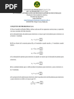 Problema 35: Una Tienda de animales ha determinado que cada Hmster debera recibirla menos 70 unidades de protena. 100 unidades de carbohidratos y 20 unidades de grasa. Si la tienda vende los seis tipos de alimentos mostrados en la tabla. Qu mezcla de alimento satisface las necesidades a un costo mnimo para la tienda? Alimento A B C D E F Solucin: Qu es lo que vamos a Minimizar? x1 = la Cantidad a mezclar de A x2 = la Cantidad a mezclar de B x3 = la Cantidad a mezclar de C x4 = la Cantidad a mezclar de D x5 = la Cantidad a mezclar de E x6 = la Cantidad a mezclar de F Min W = 2x1 + 3x2 + 5x3 + 6x4 + 8x5 + 8x6.(1) Sujeto a: 20x1 + 30x2 + 40x3 + 40x4 + 45x5 + 30x6 < 70 ......... PROTENA 50x1 + 30x2 + 20x3 + 25x4 + 50x5 + 20x6 < 100 ------ CARBOHIDRATOS 4x1 + 9x2 + 11x3 + 10x4 + 9x5 + 10x6 < 20 ---------- GRASA x1, x2, x3, x4 > 0 Problema 35: Una compaa manufacturera local produce cuatro deferentes productos metlicos que deben maquinarse, pulirse y ensamblarse. La necesidades especficas de tiempo (en horas) para cada producto son las siguientes: Producto I Producto II Producto III Producto IV Maquinado 3 2 2 4 Pulido 1 1 2 3 Ensamble 2 1 2 1 Protenas Carbohidratos (Unidades / Onza) (Unidades / Onza) 20 30 40 40 45 30 50 30 20 25 50 20 Grasa (Unidades / Onza) 4 9 11 10 9 10 Costo (Onza) 2 3 5 6 8 8