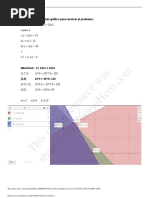 Max Z = x1 + x2 .(1) Sujeto a: x1 > 300... (2) (al menos) x2 > 400 ......(3) x1 + x2 < 1200 .......(4) x1, x2 > 0 Problema 18: (Espacio de Almacenamiento) En el ejercicio anterior, supongamos que los vasos del primer tamao ocupan 9 in2 del anaquel y los del segundo 6 in 2. El rea total de anaqueles disponibles para almacenar es a lo sumo de 62.8 ft 2. Determine las cantidades posibles de los vasos y mustrelo con una grfica. Solucin: Variables: x1 = la Cantidad de vasos de primer tamao x2 = la Cantidad de vasos de segundo tamao Max Z = x1 + x2 .(1) Sujeto a: x1 > 300... (2) (al menos) x2 > 400 ......(3) x1 + x2 < 1200 .......(4) 9x1 + 6x2 < 62.8 .......(5) x1, x2 > 0 Problema 19: (Planeacin Diettica) Una persona est pensando reemplazar en su dieta de la carne por frijoles de soya. Una onza de carne contiene un promedio de casi de 7 gramos de protena mientras que una onza de frijoles de soya (verde) contiene casi 3 gramos de protena. Si requiere que si consumo de protena diaria que obtiene de la carne y de los frijoles de soya combinados debe ser al menos de 50 gramos. Qu combinacin de stos nutrientes formarn un dieta aceptable? Solucin: Variables: x1 = la Cantidad de Carne x2 = la Cantidad de Frijoles de Soya Min Z = x1 + x2 .(1) Sujeto a: 7x1 + 3x2 > 50 .......(5)