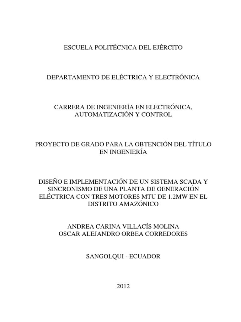 DISEO E IMPLEMENTACIN DE UN SISTEMA SCADA Y SINCRONISMO DE UNA PLANTA DE GENERACIN ELCTRICA CON TRES MOTORES MTU DE 1.2MW EN EL DISTRITO AMAZNICO