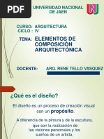 - el fondo es creado por el diseador y por tanto, es inmutable. - el circuito compositivo es cerrado, lo que no significa con forma/s cerrada/s. - el observador es esttico. En la tridimensin: El par es Forma - Espacio. - el espacio (entorno) es imprevisto, cambiante. - el circuito es dinmico. - el observador es ambulante. La colocacin al acaso de fuerzas espaciales -punto, lnea, rea- abrir el plano grfico, pero debido a que estas fuerzas estn distribuidas tan al azar, no llegarn a constituir una constelacin equilibrada en la que sean iguales en potencia y opuestas en direccin. Si las fuerzas y sus campos inducidos son de calidad ptica y potencia espacial iguales se llegar a un equilibrio, pero se tratar de un equilibrio sin tensin, esttico e inerte. No obstante, si uno sabe cmo evaluar las fuerzas y su campo de energa, se estar en condiciones de usar tales campos opuestos de modo que uno contrapese al otro en el plano grfico. Una lnea o una forma de determinado color y en determinada posicin abrir un campo y lo har avanzar hacia el espectador; otra unidad crear un campo en retroceso; una tercera activar un campo que tienda hacia arriba en la superficie; y una cuarta, un campo que tienda hacia abajo." Estos movimientos pueden ser diferentes en trminos de sus medidas y cualidades pticas -es decir, opuestos en direccin, peso e intensidad- pero, si son iguales en potencia en trminos de sus campos espaciales, se lograr en la superficie grfica un equilibrio dinmico.