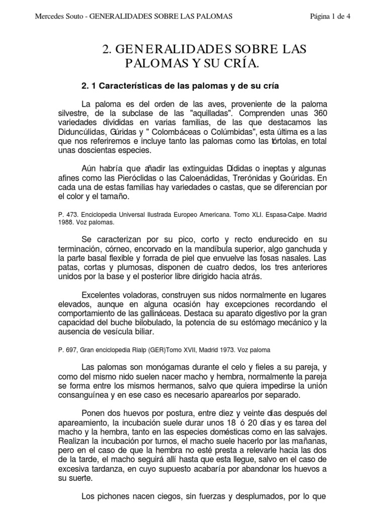 Mercedes Souto - GENERALIDADES SOBRE LAS PALOMAS