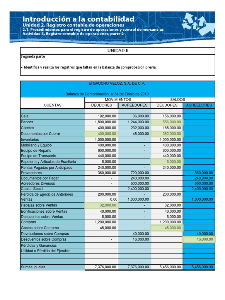 Identifica y realiza los registros que faltan en la balanza de comprobacin previa.