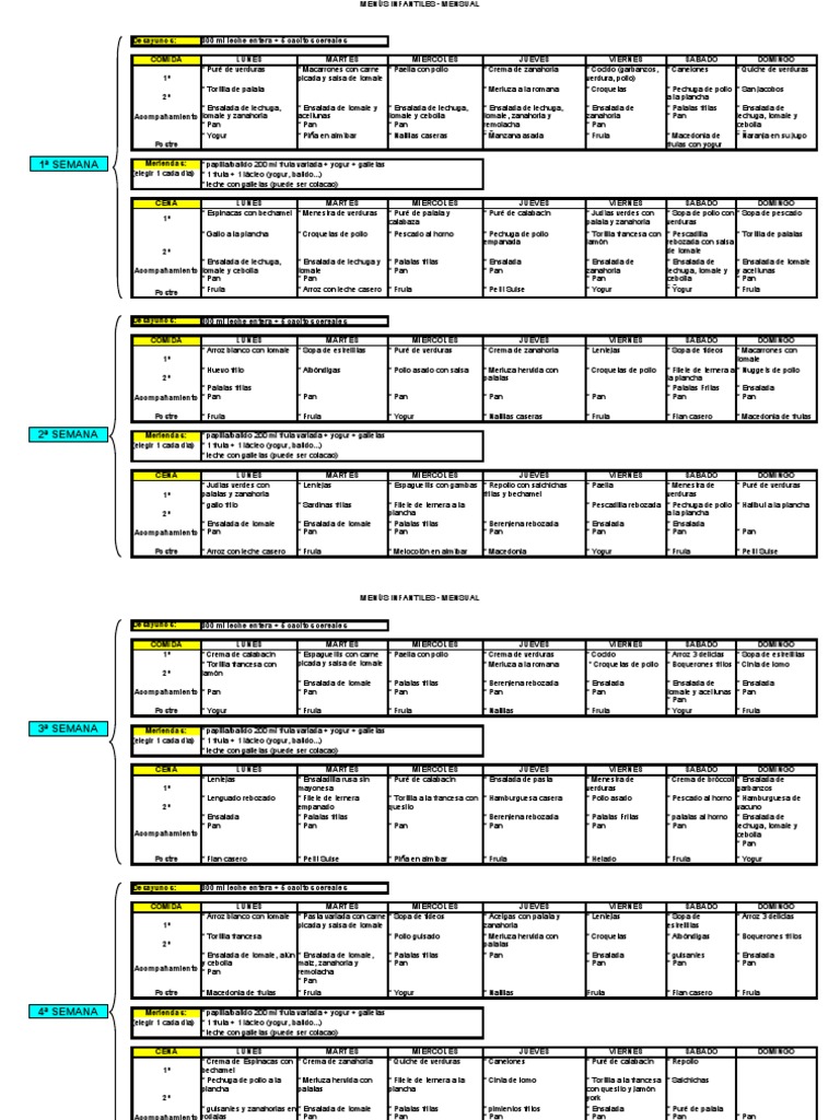 MENÚS INFANTILES - MENSUAL