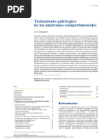 Complicaciones TVP: 1. TEP 2. Sd Postflebtico: Corresponde a una insuficiencia venosa crnica profunda. Es una complicacin tarda, que ocurre en 50-60% de los pacientes post TVP, producto de dao a las vlvulas venosas a causa de la hipertensin venosa que se produce durante la trombosis. La insuficiencia valvular genera estsis sangunea e hipertensin del sistema venoso superficial en forma secundaria. Adems, la reabsorcin y recanalizacin del trombo rara vez es completa, persistiendo algn grado de obstruccin, lo que asociado a la insuficiencia valvular condicionan el sd postflebtico. La hiperpresin que se produce se transmite al sistema venoso superficial, producindose las manifestaciones locales de esta patologa que son: - Edema - Hiperpigmentacin (extravasacin de glbulos rojos- destruccin- depsito de hemosiderina) - lceras varicosas El tto consiste en uso de medias elsticas, elevacin de las extremidades, y qx: control de las lceras y ligadura de las venas perforantes. Tratamiento a) Prevencin: Logra disminuir en 90% la incidencia de TVP y considera varios factores como movilizacin precoz (importancia de una buena analgesia), elevacin de las extremidades inferiores, compresin elstica o manguitos neumticos con compresin alternada. Estas son vlidas en pacientes con riesgo leve. En pacientes de riesgo mediano a mayor (segn esquemas de profilaxis) se debe agregar el uso de heparina no fraccionadas por vas subcutneas cada 8 horas antes y despus del evento hasta recuperacin de la condicin previa o actividad fsica. Las heparinas bajo peso molecular (HBPM) han mostrado igual efectividad, menores complicaciones y manejo ms fcil. Su limitacin es el mayor costo. En algunas circunstancias puede usarse expandidores plasmticos por su efecto de disminucin de viscosidad, aumento de volemia y mejora en la velocidad de circulacin en la micro red con disminucin en la agregacin plaquetaria. Sus limitaciones estn dadas por los efectos sobre carga de bomba. Dani Eisen, Mane Brahm Pgina 17