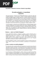desde diversas posturas tericas y desde el contexto socio-cultural peruano, como resignificacin de la tradicin que nos identifica y como reconceptualizacin del hacer educativo en la contemporaneidad. En este sentido, la reflexin sobre teoras y modelos pedaggicos, para el proceso de formacin de maestros, es un pretexto para replantear el quehacer pedaggico y la relacin educacin-pedagoga al dar cuenta de las prcticas escolares. Son ellas, las que muestran la realidad pedaggica que se establece entre maestros, estudiantes y cultura, como componentes del proceso educativo. Sin embargo, hay que reconocer que las prcticas escolares no son uniformes, tienen marcadas diferencias, a pesar de los componentes comunes que en ellas intervienen. La relacin de estos elementos obedece a factores tales como: lo ideolgico, lo social, lo poltico, lo tecnolgico y lo cientfico. Reflexionar sobre la conceptualizacin y vivencia de la pedagoga permite identificar limitaciones y fortalezas en la constitucin de los modelos pedaggicos, para proponer, de ser posible, nuevas alternativas pedaggicas.