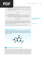Vemos que hay cuatro enlaces covalentes, y cada tomo tiene el octeto completo. Cul de las dos estructuras es ms razonable? El concepto de carga formal nos ayudar a decidir cul estructura es ms correcta (ntese el trmino ms: ambas estructuras son correctas, pero una de ellas es ms estable que la otra). La carga formal nos representa la carga elctrica que posee un tomo en una determinada molcula. La carga formal de un determinado tomo se calcula de la siguiente forma: CARGA FORMAL = [N electrones de valencia] [N electrones no enlazados] [N de enlaces que tiene el tomo] Es importante notar que debemos calcular la carga formal de TODOS los tomos que conforman una molcula (o in) y que la suma de cargas formales debe ser igual a la carga elctrica de la especie en estudio (si es una molcula neutra, debe ser cero; si es un in, debe coincidir con la carga de ste). La ESTRUCTURA MS ESTABLE ser aquella que: 1. Tenga a sus tomos con cargas formales igual a cero. 2. Tenga a sus tomos con cargas formales similares y ms cercanas a cero.