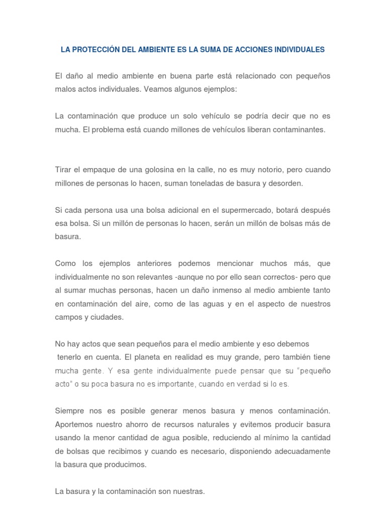 LA PROTECCIN DEL AMBIENTE ES LA SUMA DE ACCIONES INDIVIDUALES