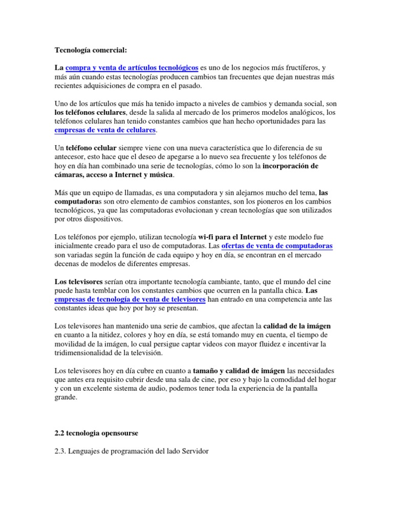 Tecnologa comercial: La compra y venta de artculos tecnolgicos es uno de los negocios ms fructferos, y ms an cuando estas tecnologas producen cambios