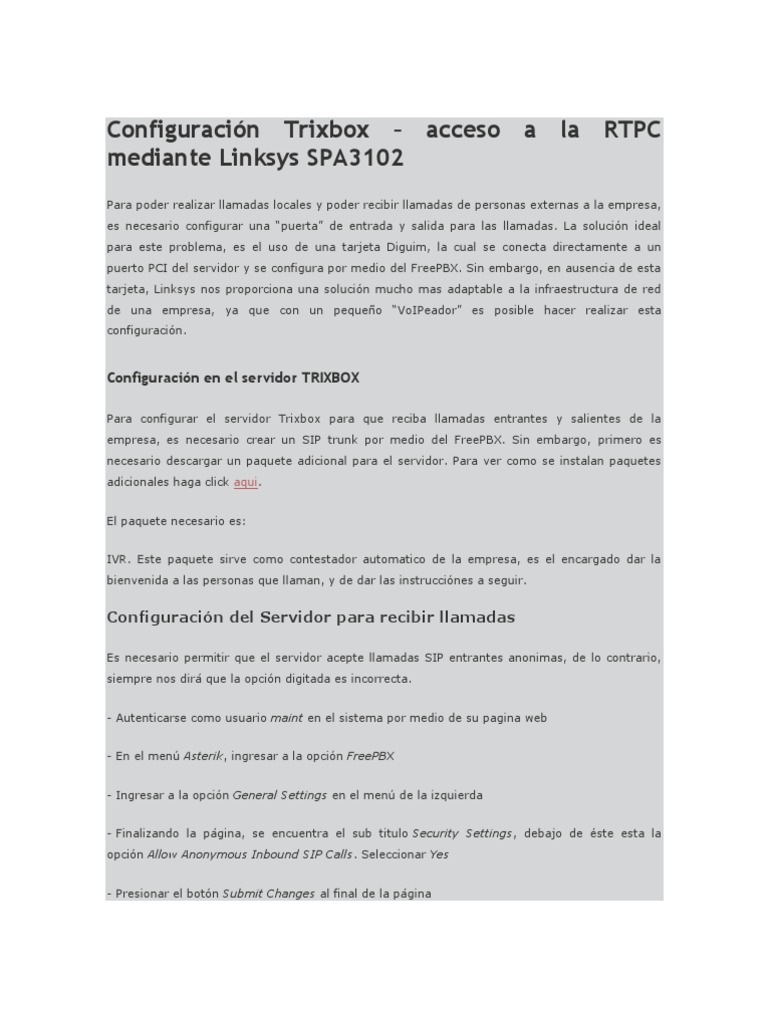 Configuracin Trixbox acceso a la RTPC mediante Linksys SPA3102
