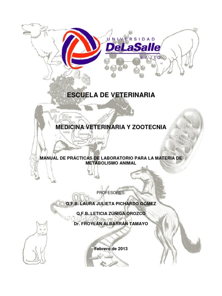 MANUAL DE PRCTICAS DE LABORATORIO PARA LA MATERIA DE METABOLISMO ANIMAL