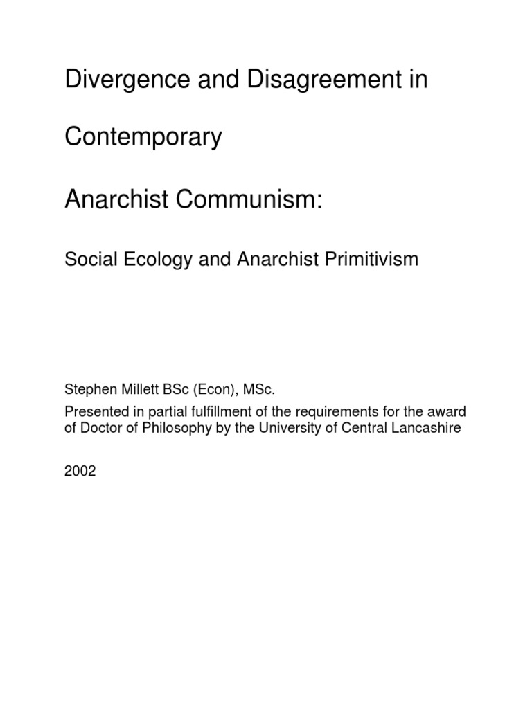 Introduction & Context Briefly locate anarchism as a political theory in a historical context. Chapter 1. Terms & Definitions Define the context and explain the terms used Anarchist Primitivism and Social Ecology including their validity.