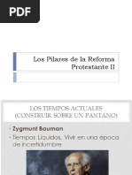 VIII. Martn Lutero (1483-1546) Sacerdote agustino, con problemas espirituales, rompi con la Iglesia debido, entre otras cosas, a la cuestin de las indulgencias. En octubre 31 de 1517 coloc en la puerta de la iglesia de Wittenberg sus 95 famosas tesis. El papa Len X estaba muy ocupado con la construccin de la baslica de san Pedro (por eso, el papa haba acentuado la predicacin de las indulgencias, para recaudar dinero necesario para la construccin). Al principio, el papa no prest inters al fraile, pero en 1520 el papa public la encclica Exurge Domine en la que condenaba la doctrina de Lutero y le daba sesenta das para retractarse. Como no lo hiciera, en abril de 1521 fue excomulgado. La doctrina de Lutero puede resumirse en los siguientes puntos: 1. La salvacin se logra slo por la fe. 2. La Iglesia carece de autoridad; es slo una sociedad libre de creyentes. 3. Slo la Biblia es norma de fe. 4. Slo el Bautismo y la Comunin fueron instituidos por Cristo. 5. El monacato y el celibato son un mal. 6. El estado debe proteger a la Iglesia. En pocos aos el luteranismo se extendi por Dinamarca, Suecia y Noruega. IX. Juan Calvino (1509-1564) Suizo, de temperamento ms fro y lgico que el de Lutero. De educacin catlica desde su infancia, pero con ideas infiltradas ya del luteranismo. En 1536 public Las instituciones de la religin cristiana. No slo se salva uno por la fe, sino que la fe es un don divino otorgado solamente a algunos. El ser humano no puede hacer nada para salvarse o condenarse. Fue ms estricto que Lutero en la interpretacin de la Biblia. Los sacramentos son puros smbolos que no tienen poder para ayudar a salvarse. Los sacerdotes no tienen poderes sacramentales, slo deben predicar. Calvino se estableci en Ginebra, Suiza. Gobern "la ciudad de los elegidos" con mano dura. Se prohibieron hasta las diversiones ms inocentes. Sin embargo, su doctrina se hizo famosa y popular, a pesar del rigor de su contenido. Calvino exalt las virtudes de la clase media: trabajo, frugalidad, tesn. Pareci lgico a la gente que el progresar en la vida era seal de bendicin divina. As la riqueza se convirti en signo de salvacin. La clase media, pues, fue la ms adepta a las ideas calvinistas. Se extendi rpidamente por Holanda, Escocia y parte de Alemania y Francia. X. Enrique VIII (1509-1547) Coronado rey de Inglaterra en 1509. En 1521 escribi contra Lutero la Defensa de los siete sacramentos; el papa le otorg el ttulo de Defensor de la fe. En 1527 llevaba ya casado dieciocho aos con Catalina de Aragn, de quien haba tenido tres varones y dos hembras, pero todos, excepto una nia, haban muerto en la infancia. Catalina, ya en los cuarenta, no pareca ofrecer esperanzas de alumbrar a un nuevo varn. Ninguna mujer en el pasado haba reinado con acierto en Inglaterra. Se necesitaba un hombre para suceder a Enrique en el trono. ste se haba casado con Catalina, viuda de Arturo, hermano mayor de Enrique, muerto en 1502, a instancias de sus padres y bajo dispensa especial del papa Julio II. En el curso normal de las cosas, a Enrique no se le hubiera permitido casarse con Catalina. Y ahora el rey insista en que su matrimonio era nulo por esa razn. No peda un divorcio sino una declaracin de nulidad. Efectivamente, muchos eruditos contemporneos dudaban sinceramente que el papa pudiese conceder semejante dispensa, a saber, casarse con la viuda de su hermano, ya que pareca contradecir el mandado del Levtico: "Si uno toma la mujer de su hermano, es una inmundicia. Descubri la desnudez de su hermano. No tendrn hijos". Los papas en el pasado haban anulado matrimonios en circunstancias parecidas y con razones de menos peso. Todos saban que el papa, ahora Clemente VII, deseaba conceder a
