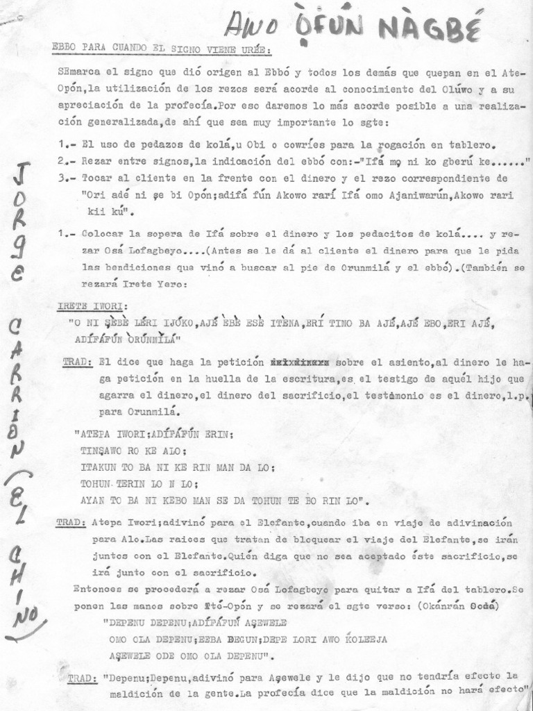 Ceremonia Yemaya Documento Antiguo