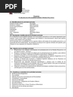 5.1.5. Calidad y variedad de Contenido: Adems de aparecer los contenidos esperados como H, A, se analizan los otros contenidos y como se presentan estos (por ejemplo Ad, Hd, (Ad), (A), etc.), que en definitiva da cuenta de sus intereses (tambin considerar los valores esperados que obtiene el evaluado en relacin a lo esperado). 5.1.6. Presencia de Indicadores Psicopatolgicos: Se deber observar si aparecen en el protocolo indicadores como las G contaminadas, G comb. G confabulatorias, D oligofrnico, F spoiling, fenmenos especiales. 5.1.7. ndice de Realidad: 6. rea Afectiva: Tipo Vivencial M:C: Anlisis del T.V. Obtenido, examinando como fueron sus respuestas (calidad formal), que tipo de respuestas, es decir el tipo de M (pasiva, activa, bloqueada, etc.), y que respuestas de FC, CF y C se encontr. Estabilidad Interna; M:FM + m: analizar la relacin cada respuesta por separado. [Link] Analizar la relacin y la proporcin encontrada por separado. FC, CF, C: FC, CF, C: Relacin entre las respuestas cromticas y acromticas. Examinar cuales se encuentran aumentadas y cuales disminuidas. A si mismo el RLC%, el porcentaje de respuestas a las lminas colores. Describir y analizar las respuestas de claroscuro obtenidas. Analizar la presencia de indicadores de adaptacin/inadaptacin afectiva. Revisar y analizar la presencia de indicadores de angustia (m, K, k y los diferentes tipos de angustia). F + % (F + % ext) control y xito en el manejo de los impulsos. F % (F % ext) control cognitivo de los impulsos. Revisar presencia de indicadores psicopatolgicos. Lminas III, V, VIII, y X.