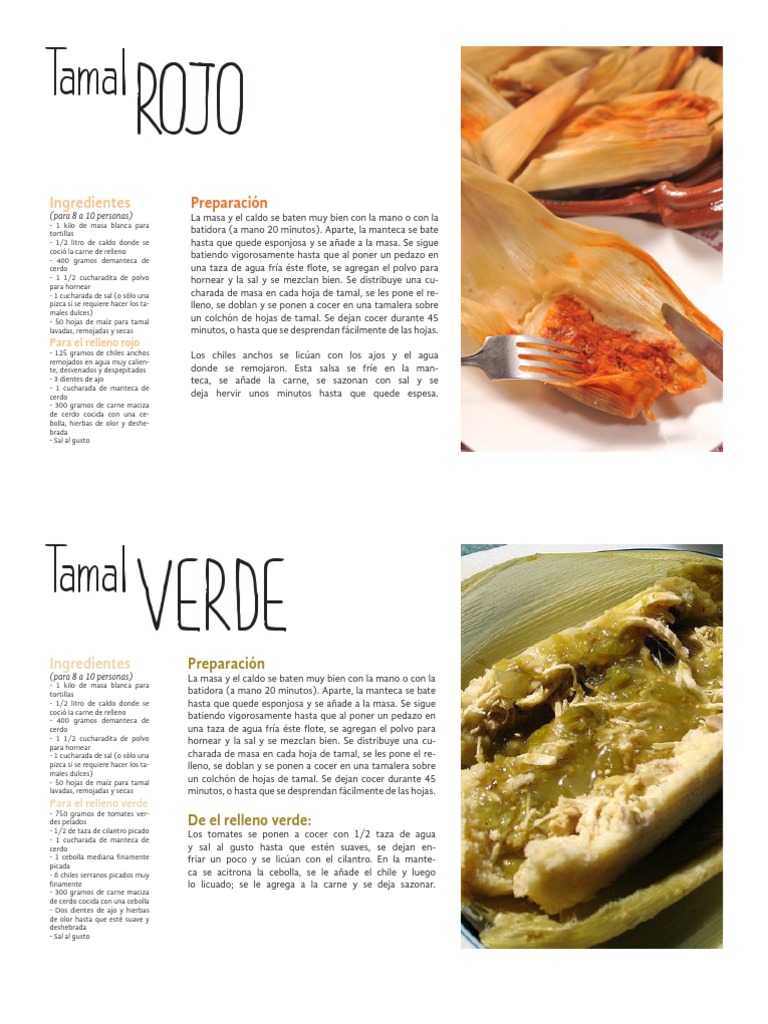 La masa y el caldo se baten muy bien con la mano o con la batidora (a mano 20 minutos). Aparte, la manteca se bate hasta que quede esponjosa y se aade a la masa. Se sigue batiendo vigorosamente hasta que al poner un pedazo en una taza de agua fra ste flote, se agregan el polvo para hornear y la sal y se mezclan bien. Se distribuye una cucharada de masa en cada hoja de tamal, se les pone el relleno, se doblan y se ponen a cocer en una tamalera sobre un colchn de hojas de tamal. Se dejan cocer durante 45 minutos, o hasta que se desprendan fcilmente de las hojas. Los chiles anchos se lican con los ajos y el agua donde se remojaron. Esta salsa se fre en la manteca, se aade la carne, se sazonan con sal y se deja hervir unos minutos hasta que quede espesa.