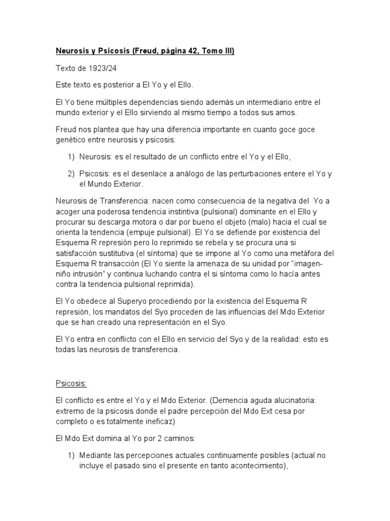Neurosis y Psicosis (Freud, pgina 42, Tomo III) Texto de 1923/24 Este texto es posterior a El Yo y el Ello.