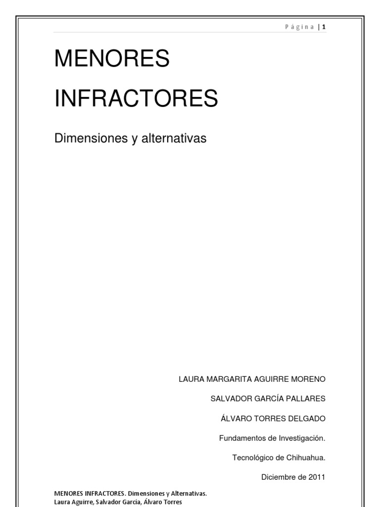 MENORES INFRACTORES. Dimensiones y Alternativas. Laura Aguirre, Salvador Garca, lvaro Torres