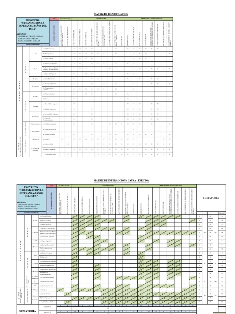 MATRIZ DE INTERACCION ( CAUSA - EFECTO) PROYECTO: "URBANIZACION LA ESPERANZA-BAOS DEL INCA"