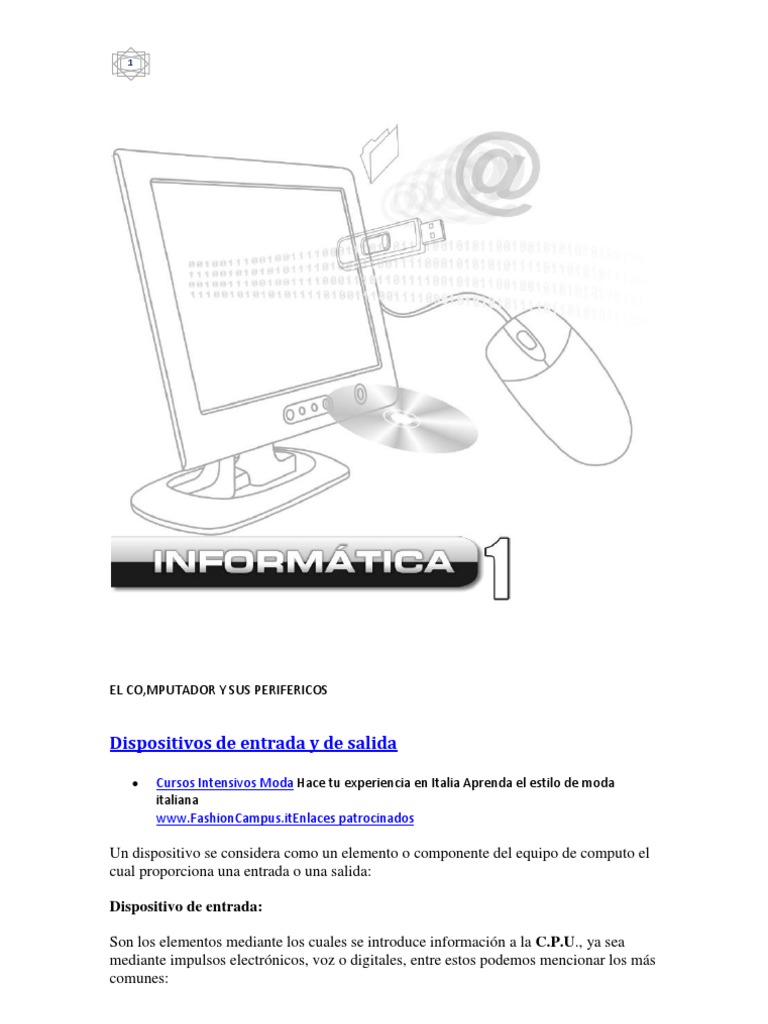 Dispositivo de salida: Son los elementos que permiten mostrar los resultados de la informacin procesada dentro de la C.P.U. entre los ms comunes encontramos: - Monitor. - Impresora.