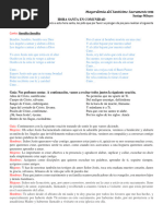 Tienes firme resolucin de no exponerte ya ms a aquella ocasin de pecado, de privarte de aquel objeto que te da, de reconciliarte con tu hermanos y hermanas, de servir con alegra de dar con generosidad? Volvers a ser sencillo, amable y condescendiente con aquella otra, a quien por haberte ofendido, la has mirado hasta hoy como enemigo? Canto: Renuvame Seor Jess. Gua: Seor, queremos comprometemos para renovar el mundo que t creaste, estamos a tu servicio, para que con nuestra vida, palabras y testimonio cristiano hagamos un mundo nuevo. Ensanos a ser esperanza para otros hermanos, especialmente los que estn alejados, los que han perdido la ilusin, aydanos a ser tus discpulos fieles. ORACIN ALTERNADA Gua: ERES DISCPULO DE JESS... Todos: Si clavas sonrisas como banderas en todos los caminos de los que estn sentados en la angustia, en la soledad, en la tristeza y en la marginacin. Gua: ERES DISCPULO DE JESS... Todos: Si prestas a Cristo tus manos para que siga acogiendo y acariciando a los sin rostro atrayente... Gua: ERES DISCPULO DE JESS... Todos: Si prestas a Cristo tus labios, tu corazn, tu ser entero, para que siga amando a los desheredados de caricias y de los ms elementales cuidados. Gua: ERES DISCPULO DE JESS... Todos: Si pasas por la vida disminuyendo las tristezas y las penas de los hermanos, que es, segn el poeta, el trabajo ms grande. Gua: ERES DISCPULO DE JESS... Todos: Si ofreces la propia sangre a cada instante como moneda de rescate por los aburridos y desencantados. Gua: ERES DISCPULO DE JESS...