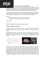 ARTEFACTO DE SUPERPOSICIN: (ALIASING, WRAP ARROUND, FOLDOVER) Este artefacto se produce cuando el tamao del objeto examinado es mayor que el FOV seleccionado. El resultado es la superposicin de aquella porcin del objeto que se extiende ms all del FOV cuya seal es recogida por la antena, en el lado opuesto de la imagen. El aliasing puede ocurrir: - en la direccin de codificacin de frecuencias - en la direccin de codificacin de fase - en las tcnicas 3D, tambin en la direccin de seleccin de corte. Soluciones - UTILIZACIN DE FILTROS ANALGICOS: algunos equipos de RM disponen de un sistema de filtros que eliminan la seal de las frecuencias no deseadas. - OVERSAMPLING EN LA DIRECCIN DE CODIFICACIN DE FRECUENCIAS: consiste en aumentar la velocidad de muestreo en la direccin de codificacin de frecuencias. El resultado es un aumento del FOV en esa direccin, sin que el tamao del pxel se vea aumentado. En la direccin de fase tambin se puede hacer oversampling, pero aumentar el nmero de pasos de codificacin de fase comporta un mayor tiempo de exploracin. - ADQUISICIONES INTERCALADAS: si estamos utilizando 2 adquisiciones, stas pueden ser intercaladas en la direccin de fase, con lo que se consigue doblar el FOV en esa direccin. El cociente seal-ruido no se ve alterado. - ANTENAS DE SUPERFICIE: la utilizacin de antenas de superficie nos permite eliminar de entrada las regiones del objeto estudiado que producen el aliasing.