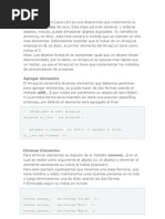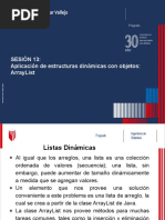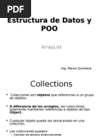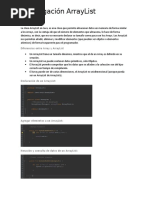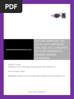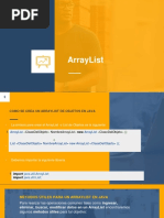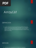 La clase ArrayList ([Link]) es una objeto que acta como una lista que implemente la interfaz Collection de java. Esta clase permite contener y ordenar objetos, incluso, puede almacenar objetos duplicados. Su tamao es dinmico, es decir, esta lista crecer a medida que se inserten en ella mas elementos. Debememos recordar que el ndice de un ArrayList empieza en 0 (cero), es decir, el primer elemento del ArrayList tiene como ndice el 0. Nota: Los objetos ArrayList se comportan igual que un objeto Vector desincronizado, pero con la salvedad de que un ArrayList se ejecuta ms rpido que un Vector, ya que el ArrayList no tiene que implementar los mtodos de sincronizacin de procesos.