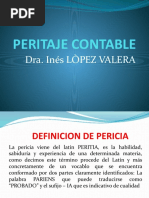 EL PERITAJE: Varios autores sostienen que el dictamen pericial no es una prueba sino el reconocimiento de una prueba ya existente. Estas afirmaciones son contradictorias, porque, si comprueba hechos es un medio de prueba; a menos que se considere al hecho que conduce a conocer otro hecho, pero entonces tampoco serian pruebas el testimonio, la confesin, el documento y la inspeccin judicial, sino los hechos relatados o percibidos. FINALIDAD DEL PERITAJE La finalidad nicamente descubrir, en el problema asignado al perito, la verdad concreta y explicarla cientficamente o tcnicamente o segn las reglas de la experiencia PRUEBA PERICIAL Es la actividad procesal que se realiza en virtud y cargo judicial por distintas persona( especialidad en peritajes) especialmente calificadas por sus conocimientos artsticos o cientficos, mediante la cual se proporciona al juez razones o argumentos para la formacin de su conocimiento respectos de ciertos hechos cuya percepcin a entendimiento escapa de las actitudes del comn de las gentes y que son objetos de la prueba en el proceso. pericia suele denominarse procesalmente la actividad por la cual determinadas demostraciones o indagaciones vienen confiadas a personas dotadas de especiales conocimientos tcnico PRUEBA PERICIAL CONTABLE Es la labor que por mandato judicial realiza el Contador Publico en funcin de Perito dentro de un proceso judicial con la finalidad de proporcionar al juzgador argumentos o razones para la formacin de su conocimiento respecto de hechos contables, financieros, tributarios y afines; como as tambin en la determinacin de sus caractersticas, sus causas y cuanta de sus efectos, factores sobre las cuales el juez necesita adquirir certeza al momento de sentenciar PERITO CONTABLE JUDICIAL Es el profesional calificado e idneo en ciencias y tcnicas contables para opinar sobre controversias de carcter patrimonial en su condicin de auxiliar de justicia a travs de su informe. Es el profesional con suficientes conocimientos de la ciencia y tcnicas contables cuyos servicios son requeridos por el poder judicial para superar las dificultades que se oponen al conocimiento directo de los hechos por parte del juez en los litigios sobre aspectos patrimoniales de diversa ndole. Los resultados de su labor los expone en el informe pericial, que es un instrumento de prueba cientfico, tcnico, objetivo, razonado, imparcial concluyente
