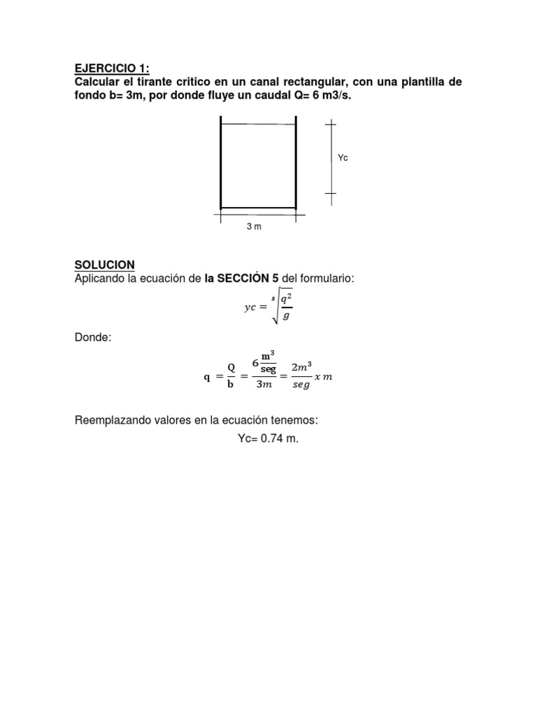 Reemplazando valores en la ecuacin tenemos: Yc= 0.74 m.