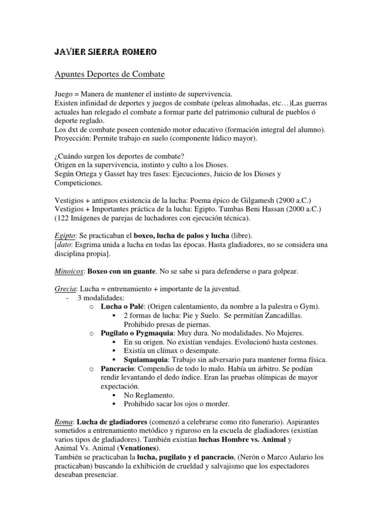 JAVIER SIERRA ROMERO Apuntes Deportes de Combate