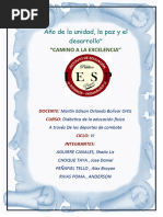 Proceso de ejecucin de los dxtes de combate: 1. Mecanismo de percepcin: Gran importancia. Muchos estmulos a los que atender. 2. Mecanismo de decisin: Complejidad. Muchas tcnicas que elegir. A mayor nivel tcnico, mayor complejidad en las decisiones (+ alternativas). 3. Fase de ejecucin: Influyen dos factores: Coordinativo (exigencia alta en velocidad precisin) y el Fsico (lvl exigencia alto, no descanso, contrario de complexin similar a la nuestra). Feedback: Puede que tengamos que modificar decisiones por la informacin interna (judo) y por la informacin externa (judo, taekwondo). La mayora de dxtes tienen un componente de dificultad alto en una de las 3 fases; los dxtes de lucha-combate las tienen en las 3. Situacin de las actividades de lucha respecto a las distintas clasificaciones de las habilidades motrices: Globales, simultneas, fundamentalmente perceptivas, abiertas, persona y objeto en movimiento, en la tarea habr interceptaciones, golpeos con mvil evitndonos, esquivas de mvil buscndonos Regulacin externa, individual, auto-propuesta (decidimos que vamos a hacer), prevalece el factor mixto (cuantitativo-cualitativo), predominan tanto los procesos de percepcin como los de decisin y ejecucin, influye en las 3 reas de desarrollo de la persona (motriz, afectiva y cognoscitiva). Objetivos educativos propios de las actividades luctatorias: Los dxtes de combate en general desarrollan: - Capacidades de percepcin. - Capacidad de decisin. - Equilibrio. - Capacidad de estrategia individual. - Control de reacciones afectivas y emocionales. o Controlar acciones, aceptar contacto ntimo, aceptar fracaso o triunfo. o Aceptar sufrimiento, gestionar el esfuerzo. Estos objetivos educativos podran situarse hasta los 15 aos. De ah hasta los 35 competicin. A partir de los 35 profundizar conocimientos, entrenamiento fsico y mental e higiene corporal. [datos: No incluir la competicin hasta los 15 aos. En taekwondo existen competiciones infantiles de tcnica desde los 8 aos]. Orientaciones Metodolgicas: Heterogenidad del grupo = controlar alumnos fuertes e integrar a los ms tmidos. Perodos de trabajo de ejecucin planteados como sesiones cortas, interrumpidas por perodos frecuentes de actividades con un carcter ms ldico. En iniciacin, proponer lucha en las primeras sesiones. Progresivamente ir ofrecindoles posibles soluciones (descubrimiento guiado). Dar sentido de cooperacin, deportivo y de conservacin de la integridad del compaero. Posteriormente perfeccionar tcnicas (estilos de instruccin directa). Conveniente clima distendido utilizando saludos, abrazos, bromas, etc. 3 7 aos: Tareas motrices habituales. Incluye: contactar, aproximarse, alejarse, distanciarse, evitar, rehuir, esquivar, escapar, empujar, tirar, mantener distancias, conservar posiciones, arrojar, soltar, sostener, coger, agarrar, atrapar.