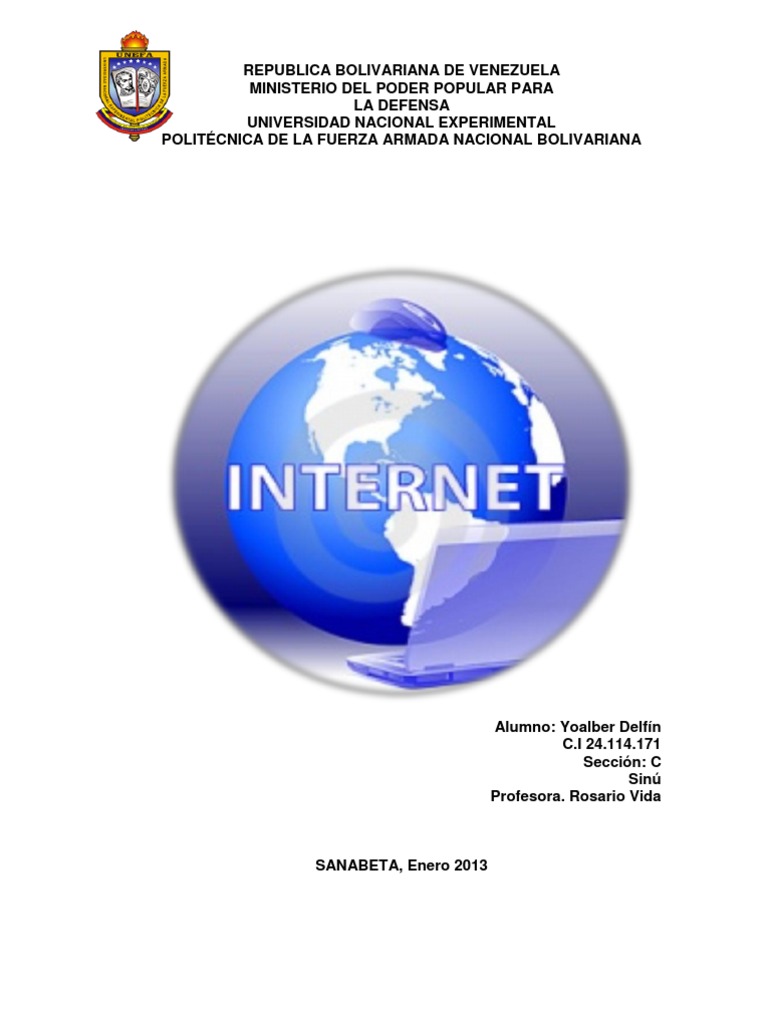 Imagnese un estudiante con mucha tarea, poco tiempo para hacerla, muchos lugares donde buscar, y entonces encuentra la manera de hacer el trabajo de doce horas en tan solo una, no tiene que buscar en muchos libros, ni salir en busca de la informacin, solamente encender una computadora, entrar a Internet y decirle que buscar, habr concluido el trabajo de manera muy rpida. En esta monografa abordaremos algunos temas sobre el Internet