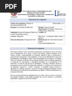 Unidad 1: Naturaleza y caractersticas de la investigacin cualitativa (dos semanas) Introduccin Caractersticas generales de la investigacin cualitativa El concepto de realidad en el mtodo cualitativo Dos conceptos claves en la metodologa cualitativa: introspeccin y empata Las fases del mtodo cualitativo Categoras del anlisis cualitativo Las principales tcnicas de la metodologa cualitativa Problemas que enfrenta la investigacin cualitativa Unidad 2: Algunas orientaciones terico-metodolgicas en la investigacin cualitativa (tres semanas) El mtodo interpretativo o el mtodo llamado Verstehen El interaccionismo simblico La metodologa representada por la etnometodologa La etnografa como mtodo de investigacin social La hermenutica La metodologa teorticamente fundamentada, grounded theory