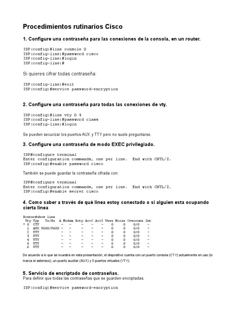 1. Configure una contrasea para las conexiones de la consola, en un router.
