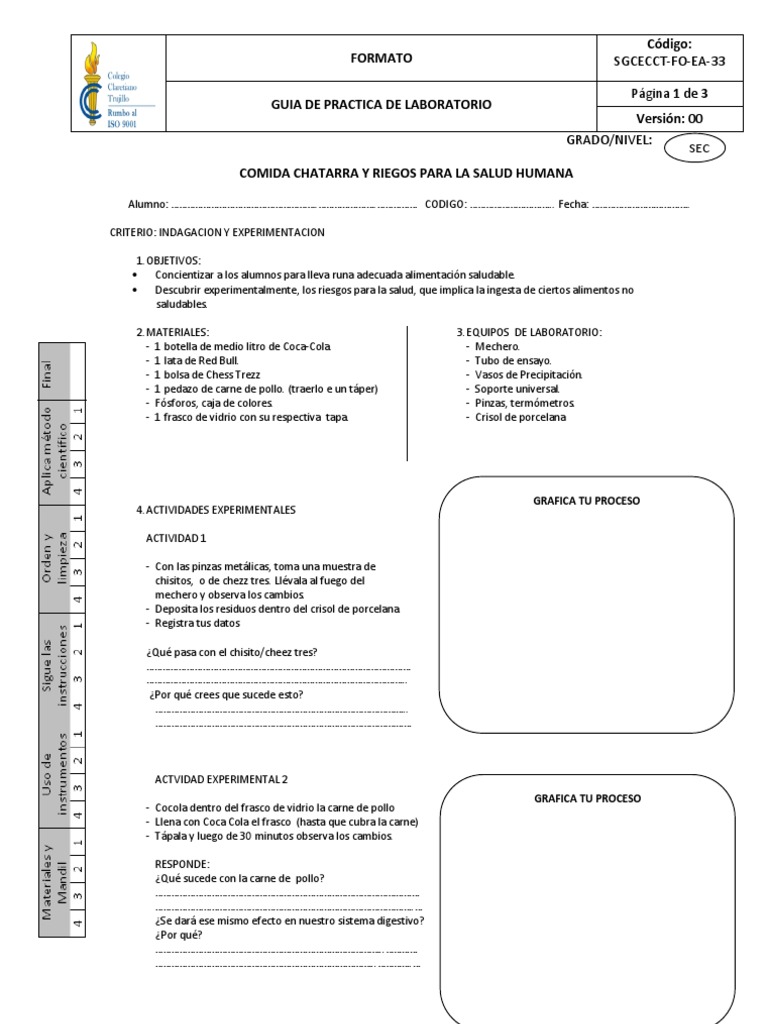 Descubrir experimentalmente, los riesgos para la salud, que implica la ingesta de ciertos alimentos no