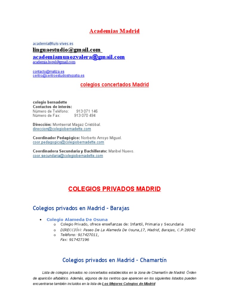Colegio Alameda De Osuna o Colegio Privado, ofrece enseanzas de: Infantil, Primaria y Secundaria o DIRECCIN: Paseo De La Alameda De Osuna,17, Madrid, Barajas, C.P:28042 o Telfono: 917427011,