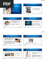 MODULO I A) Video: de bienvenida, presentacin e informacin sobre la metodologa del curso y la orientacin sobre el trabajo monogrfico de sntesis que a modo de evaluacin se entrega al finalizar el curso. B) Antecedentes histricos y desarrollo contemporneo de la Terapia Neural. C) Propedutica a la terapia neural o Neural terapia. Informacin general. Conceptos terico-prcticos generales sobre la Terapia Neural: que es? para que sirve? en que personas enfermas se la puede emplear. Indicaciones y contraindicaciones. La originalidad del tratamiento mdico neural-teraputico. MODULO II D) Informe sobre Terapia Neural basado en grficos estadsticos con datos extrados de la experiencia acumulada en los primeros 400 enfermos ingresados a la Unidad de Terapia Neural para el Tratamiento Integral del Enfermo con Dolor servicio del Hospital Interzonal General de Agudos Eva Pern; hospital asociado a la Facultad de Medicina de la Universidad de Buenos Aires (FM-UBA).