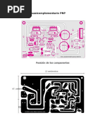 La mscara de componentes muestra la posicin de los componentes y sus valores. Este dibujo se imprime en la cara contraria al cobre. Es importante que al imprimirlo sobre la baquelita, coincida con las pistas y orificios del impreso, para esto perfore previamente los orificios grandes y uselos como referencia o gua. Los orificios restantes pueden ser perforados despus. La mscara de componentes no solo es una gua, tambin le da una muy buena presentacin a su tarjeta y facilita en caso de ser necesario, el cambio de un componente, ya que algunas veces estos pierden el valor que traen impreso, al quemarse.