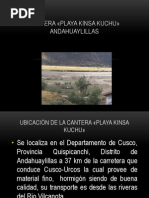 nivel fretico alto. Entre las abscisas 20+000 y 22+000 existe un depsito arcilloso fluvio-glaciar de una antigua laguna producto de las aguas del glaciar del Cayambe (Fotografa 21) La permeabilidad secundaria a travs de las grietas de la formacin es muy alta. El escurrimiento superficial es de grado alto y el drenaje es bueno en las rocas volcnicas diaclasadas. Las laderas y taludes se encuentran en condiciones psimas con flujos y cadas, de tal manera que a lo largo del camino existente se han construido varios muros de contencin, muros de gaviones (Fotografa 19). En la abscisa 20+700 se observa un depsito coluvial y probablemente existe una falla tectnica en este sitio. La erosin en este tramo es muy alta. La excavacin se va a realizar 100% en roca, con las alturas de corte hasta de 14.4 m. Como fuente de material se podrn utilizar las rocas de los cortes proyectados a lo largo de todo el camino. Tambin las acumulaciones de arena gruesa de la abscisa 22+200 se puede utilizar como material de construccin. 1.8. FUENTES DE MATERIAL Para las fuentes de material de construccin de la va se puede recomendar 2 posibles sitios que previamente tienen que ser investigadas y ensayadas. 1.- A 15 kilmetros del inicio del proyecto en la carretera Santa Rosa de Cusubamba - Cayambe existe la cantera Pingulmi que consiste en un afloramiento de rocas andesticas de la Formacin Volcnicos Indiferenciados, que se encuentran a lo largo del Ro Pisque. Las coordenadas WGS 84 de la cantera son: 286 N, 809150 E. Tiene libre aprovechamiento para el MTOP. Esta cantera se encuentra en explotacin por la compaa PANAVIAL. Probablemente califica para todo uso: subbase, base, carpeta asfltica y hormigones. (Fotografas 25,26). 2.- Entre las abscisas 20+000 y 23+000 de la va del proyecto en los cortes afloran las rocas de la Formacin Cayambe conformadas por las lavas andesticas meteorizadas. Se presume que constituyen un buen material para subbase, base, carpeta asfltica y hormigones previo ensayos en laboratorio. (Fotografa 27).