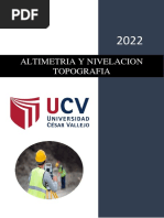 La Topografa la ciencia que estudia el conjunto de principios y procedimientos que tienen por objeto la representacin grfica de la superficie de la Tierra, con sus formas y detalles, tanto naturales como artificiales. Esta representacin tiene lugar sobre superficies planas, limitndose a pequeas extensiones de terreno, utilizando la denominacin de geodesia para reas mayores. De manera muy simple, puede decirse que para un topgrafo la Tierra es plana, mientras que para un geodesta no lo es. El trabajo topogrfico consiste en plasmar en un plano topogrfico la realidad vista en campo, en el mbito rural o natural, de la superficie terrestre. Por lo cual definiremos que es un nivel topogrfico. El nivel topogrfico, tambin llamado nivel ptico o equialtmetro es un instrumento que tiene como finalidad la medicin de desniveles entre puntos que se hallan a distintas alturas o el traslado de cotas de un punto conocido a otro desconocido.