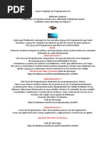 1 y JDK 7u1 (Espaol) | 3.23 GB ] Descripcion: Curso en vdeo para aprender a programar en Java, como digo es super recomendable para los que no tienen ni idea de programar. El curso empieza desde cero desde la estructura bsica de un programa y consta de 40 vdeos todo muy bien explicados. Ficha Tecnica: Autor: Jess Conde Lenguaje de programacin: Java IDE: Netbeans Idioma: Espaol Formato:mp4 Total de Videos: 40 Cada Archivo Contiene: *01 VideoTutorial (Mp4) *Hojas de ejercicios (contienen escritos todos los comandos utilizados en cada videotutorial) Descripciones: 01.- Curso de Java para principiantes. Introduccin: Uso de NetBeans VideoTutorial N 1 del Curso de Java para principiantes. Empezamos con una introduccin a los lenguajes de programacin y algunas peculiaridades de Java. Instalamos y usamos por primera vez NetBeans, el IDE que utilizaremos a lo largo del curso, y terminamos creando nuestro primer programa y viendo como NetBeans nos ayuda a detectar y solucionar errores sintcticos en la escritura de cdigo. 45 minutos. 02.- Anatoma de un Programa Java VideoTutorial N 2 del Curso de Video Tutoriales de Java para principiantes: Anatoma de un programa Java. Vemos como crear nuevos archivos dentro de un proyecto; Crear el programa Anatomia; La declaracin class; La declaracin main; Agrupamiento de cdigo mediante el uso de llaves; Almacenar informacin en una variable. Mostrar el contenido de una variable en pantalla; Compilacin; creacin de los archivos .class; Solucin de errores en la escritura de cdigo con la ayuda de NetBeans. Unos 30 minutos. 03.-Tipos de programas Java y uso de argument