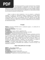 4. Activar diferentes sentidos. En esta categora se distinguen dos series de ejercicios. La primera incluye aquellos en los que se priva a los participantes del sentido de la vista con objeto de ejercitar los dems. La otra serie trabaja con todos, incluida la vista, y consiste en actividades colectivas donde los participantes se distribuyen por el espacio creando diferentes formas, figuras y agrupaciones (en grupos de 3 4 personas, formando