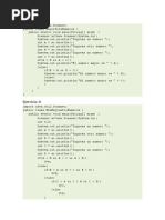 System.out.println("Error: convertirStringEnEntero()"); } return conversion; } public static float convertirStringEnFloat(String cadena){ float conversion = 0; try{ conversion = Float.parseFloat(cadena); }catch(Exception e){ System.out.println("Error: convertirStringEnFloat()"); } return conversion; } } package programa1; public class Programa1 { public static void main (String [] args){ int a =10; int b =25; // 10>25 if( a > b ) { System.out.println("el numero mayor es : "+a); System.out.println("el numero menor es : "+b); } else System.out.println("el numero mayor es : "+b); System.out.println("el numero menor es : "+a); } public static void main2 (String [] args){ int i; for (i=0;i< args.length;i++){ System.out.println(args[i]+""); } System.out.println(); } static void main1(String[] args) { if(args.length >1){ System.out.println("hay demasiados parametros"); }else if (args.length == 0){ System.out.println("falta el nombre de la persona"); }else{ System.out.println("buenos dias " + args[0]); } }