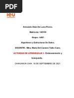 String[] nombre = {"Juan", "Pedro", "Maria", "Raul", "Paula"}; System.out.println("La nota busca corresponde a " + buscaNota(notas, nombre, 18)); System.out.println("La nota mayor corresponde a " + notaMayor(notas, nombre)); } static String buscaNota(double[] notas, String[] nombre, double notabuscada){ for (int i =0; i < notas.length; i++){ if (notas[i] == notabuscada){ return nombre[i]; } } return "No econtro"; } static String notaMayor(double[] notas, String[] nombre){ double mayor=0; String nombreMayor = "no encontro"; for (int i = 0; i < notas.length; i++){ if (notas[i] > mayor){ mayor = notas[i]; nombreMayor = nombre[i]; } } return nombreMayor; } } 2 package ejemploarreglos; import java.util.Arrays; public class EjemploArreglos { public static void main(String[] args) { // TODO code application logic here double[] notas = new double[5]; notas[0] = 12; notas[1] = 15; notas[2] = 13; notas[3] = 16; notas[4] = 11; //llenando de otra forma //double[] notas1 = {13,15,13,16}; double promedioNotas = promedio(notas); System.out.println("El promedio de la nota es:" + promedioNotas); //Listando el arreglo System.out.println("listado"); mostarArreglo(notas); System.out.println(Arrays.toString(notas)); Arrays.sort(notas); System.out.println("listado con arreglo ordenado"); mostarArreglo(notas); System.out.println("la nota mayor es: " + notas[notas.length-1]); System.out.println("la nota menor es: " + notas[0]); } static double promedio(double[] arregloNotas){ double suma = 0, promedio = 0; for (int i = 0; i < arregloNotas.length;i++){