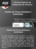 TIEMPOS DE EJECUCION Se trata, tal vez, del dictamen pericial ms difcil y que exige ms de la experiencia y razonamiento del perito. Tantos son los exmenes que pueden poner de manifiesto indicios y an evidencia de la produccin previa de las firmas, que el perito precisa recurrir a todas las materias que le ofrece la documentos copia, para dar adecuada respuesta, de acuerdo con las caractersticas de los casos y lo que presenten los documentos sometidos a pericia. Las pruebas e indicios ms comunes se desprenden del anlisis de los cruces de trazos; por el estudio de los tiempos de ejecucin con las plantillas u otras metodologas; por la distribucin del texto y de las firmas; por los evitamientos o reflejos de evitamientos; por la demostracin de ante o posdatacin; por el entrecruzamiento de los escritos con agujeros, manchas, dobleces, borrones, etc.; por la propagacin de surcos de otros documentos; por cortes manuales de los soportes; por la ausencia o presencia de copias carbnicas segn los casos -, cuando su impresin consta en el texto; por el dactilografiado del texto sobre las estampillas; por la ausencia de propagaciones de carbn, etc. Como ya dijramos, no hay lmites para las pruebas e indicios que pueden ser recolectados en estas demostraciones. El nico lmite ser la competencia, discernimiento y perspicacia del perito. Se trata de una maniobra que, en muchos casos, no ofrecer elementos suficientes para una conclusin. Adems difcilmente se podr concluir que un documento no fue firmado en blanco. Cuando le es sometida la cuestin, raras veces el perito podr afirmar que un documento no fue firmado en blanco. Limitndose a informar que no encontr elementos que permitieran una respuesta positiva. Hemos encontrado, sin embargo, innumerables casos como insolubles, en los cuales existan pruebas incontestables que no haban sido percibidas por los peritos, exactamente porque no se encontraban entre las ms comunes, porque huan de la rutina. Los medios ms frecuentes para indicar que una firma fue asentada antes del texto, son los entrecruzamientos en un sentido genrico. No slo de dos trazos ejecutados manualmente, uno de tinta y otro de esferogrfica. Son entrecruzamientos con dobleces,