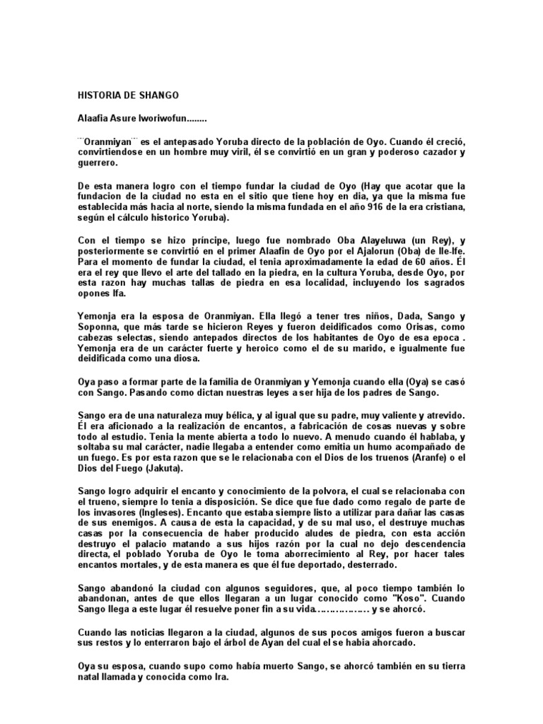 HISTORIA DE SHANGO Alaafia Asure Iworiwofun........ Oranmiyan es el antepasado Yoruba directo de la poblacin de Oyo.
